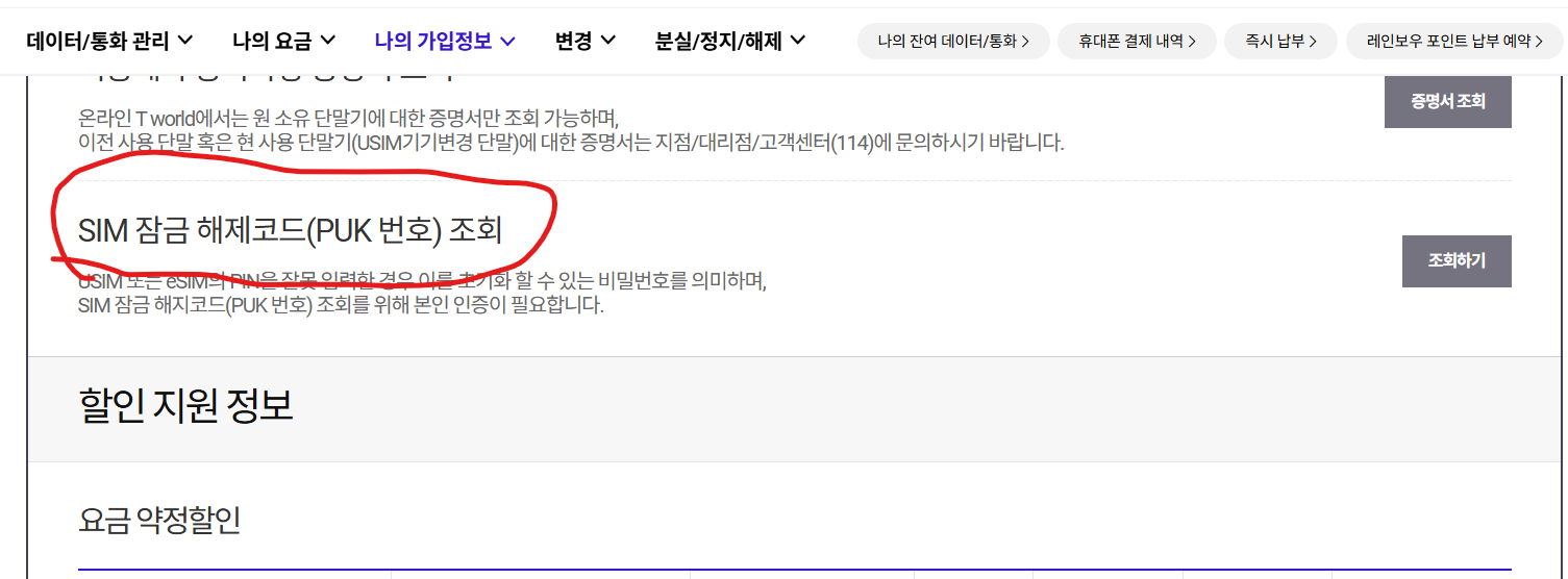 요즘은 PIN번호 한두 번 잘못 누르기만 해도 유심이 금방 잠깁니다.오늘도 그랬습니다. 그래서 또 PUK번호를 찾기 위해 T월드에 접속했죠.이번엔 정말 누구나 따라할 수 있도록, 직접 캡처한 이미