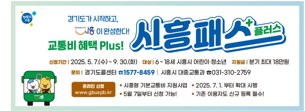 2025년 7월 1일부터, 시흥시에 주민등록이 있는 6세~18세 어린이 및 청소년