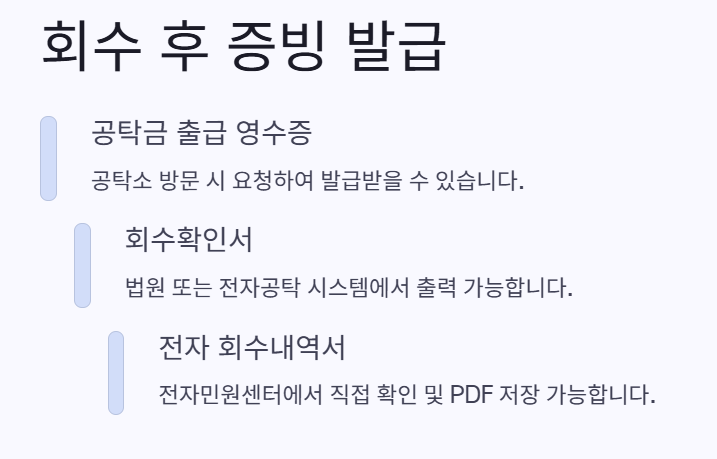 - 회수확인서: 법원 또는 전자공탁 시스템에서 출력 가능