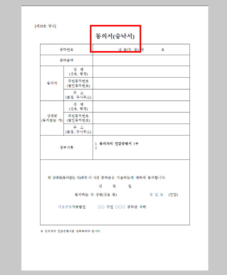 2. 공탁금 회수 동의서 양식 다운로드 방법