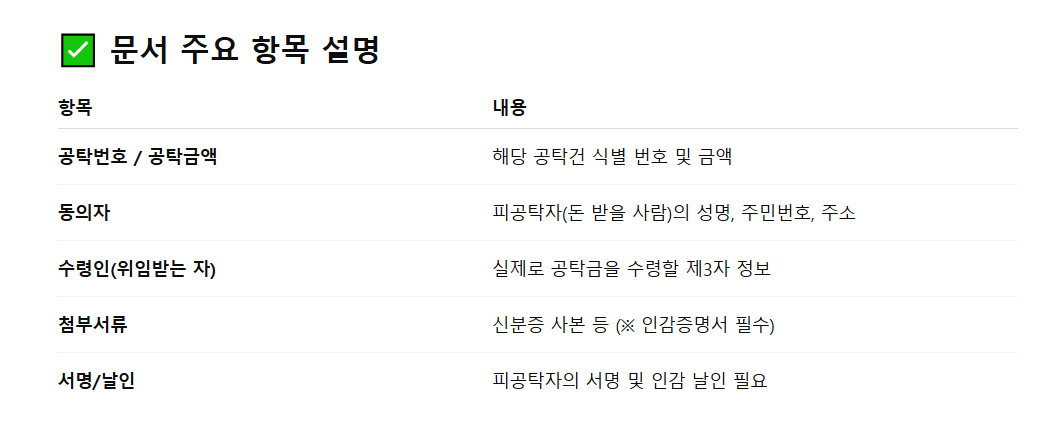 | 공탁자가 지정한 수령인 외 회수 시도 | ✅ 필요 (동의서/위임장 포함해야 함) |