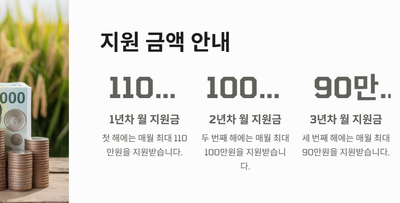 최대 3년간 지원되며, 실제 영농 활동 여부를 기준으로 매월 지원금이 지급됩니다.