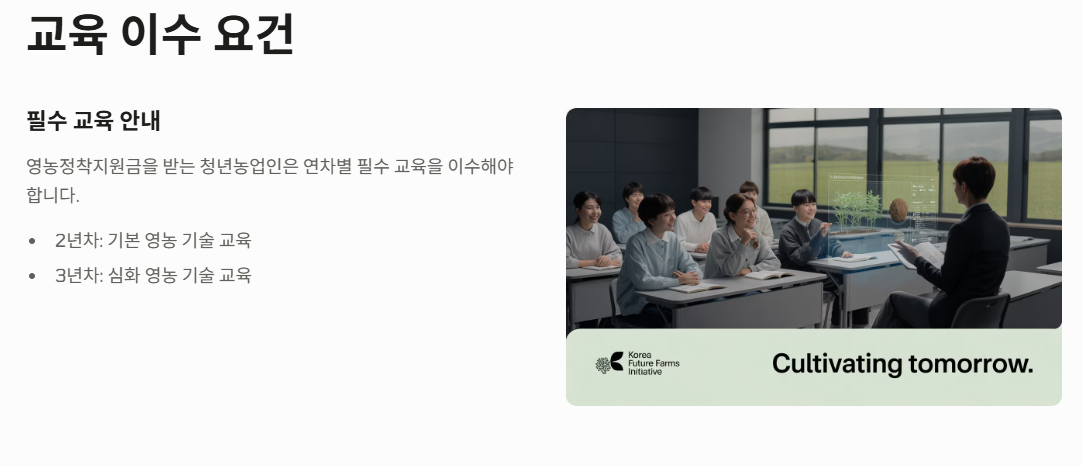 - 농업기술센터를 통한 기술교육 및 컨설팅 지원