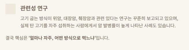 다만 고기 굽는 방식이 위암, 대장암, 췌장암과 관련 있다는 연구는 꾸준히 보고되고 있으며,